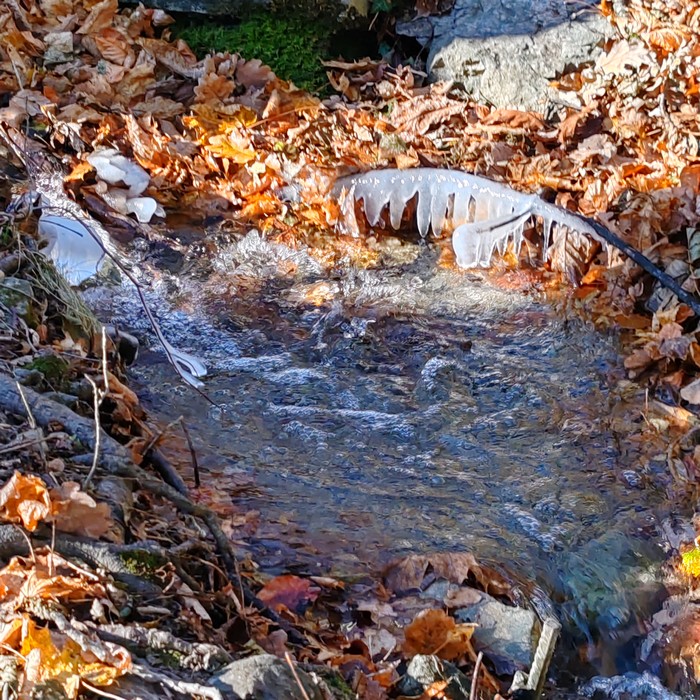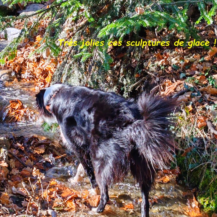 C'était hier matin ! Brrr ! Nous sommes allés dans nos sentiers de Charance pour être un peu plus abrités que le long du canal... Et c'était très beau, toutes ces sculptures au fil des ruisseaux !