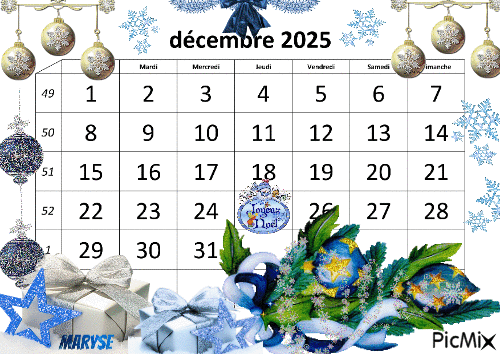 Merci à mon amie Maryse pour ce si beau calendrier comme chaque mois...