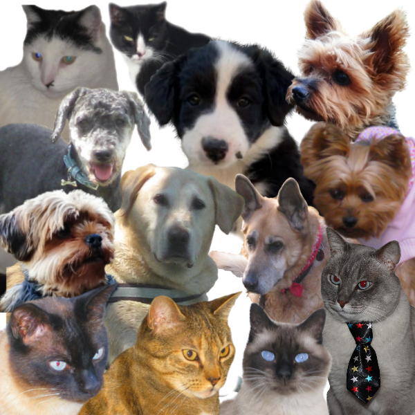 Aujourd'hui en Mai 2024, hélas j'ai des absents : Pona, la berger allemand, Orry le petit caniche, Isis, la petite siamoise, Dock le petit chat noir et blanc, Vick le labrador, et depuis le 24 septembre 2020 et le 28 octobre 2020 mon petit Hercule dit Papuchou, et ma petite siamoise Héra.