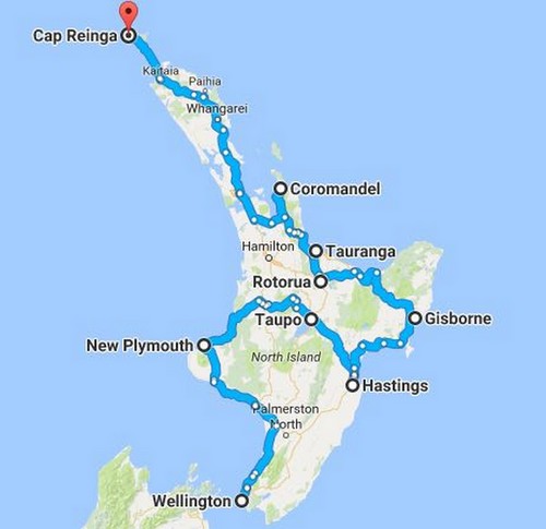 à 30 km à l'est du cap Reinga, sont légèrement plus au nord,