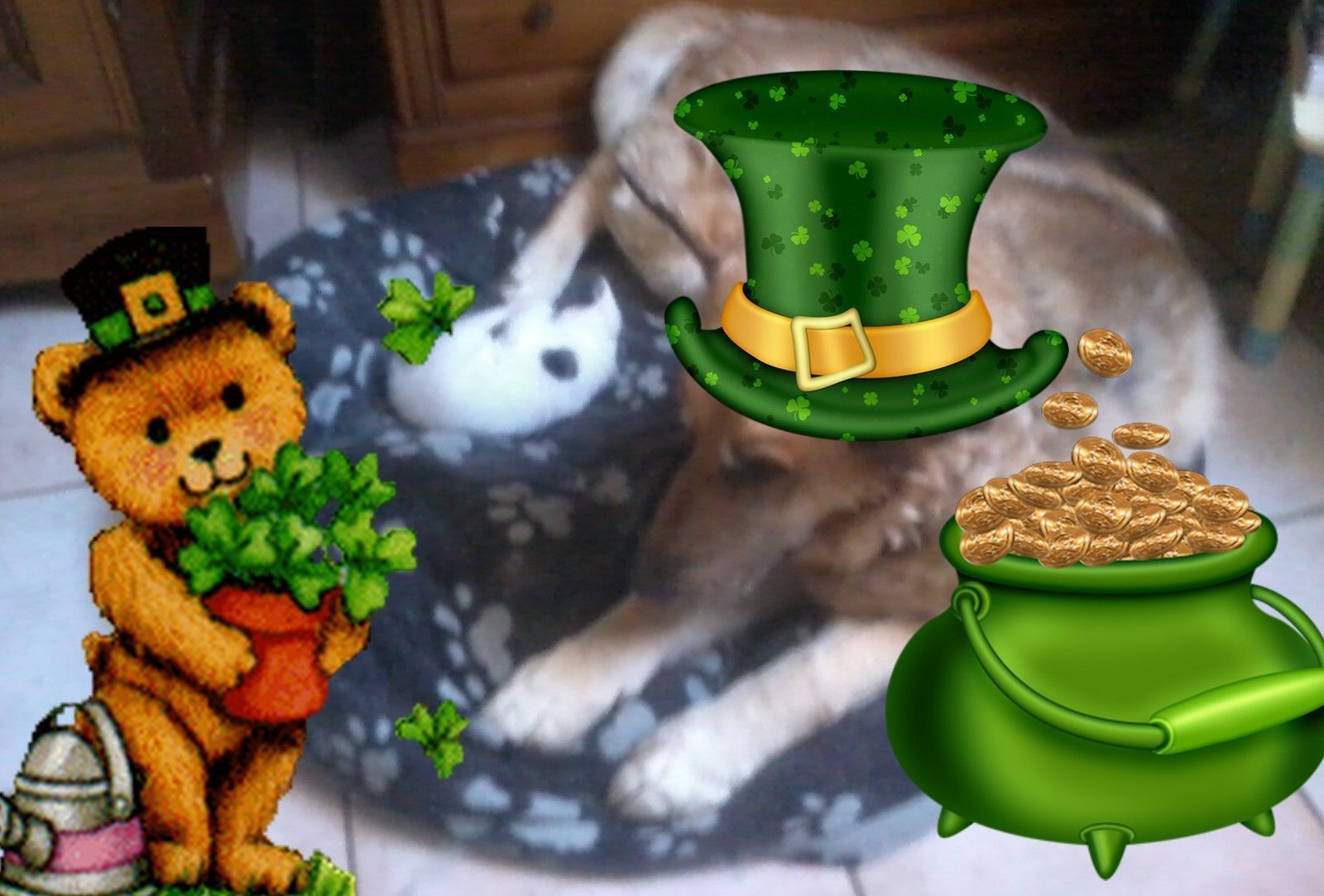 Merci à Napo qui m'a habillé mes petits canins et mes petites félines et aux sites et blog qui permettent avec des petites merveilles : papillons, petits personnages, trèfles, fonds...de faire des créations..