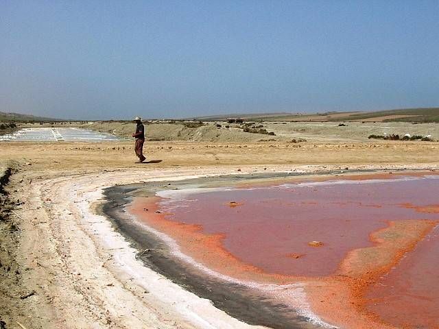 L'eau circule ensuite avec une salinité croissante dans des compartiments de moins en moins profonds jusqu'aux aires saunantes de faible superficie où s'effectue la récolte du sel.