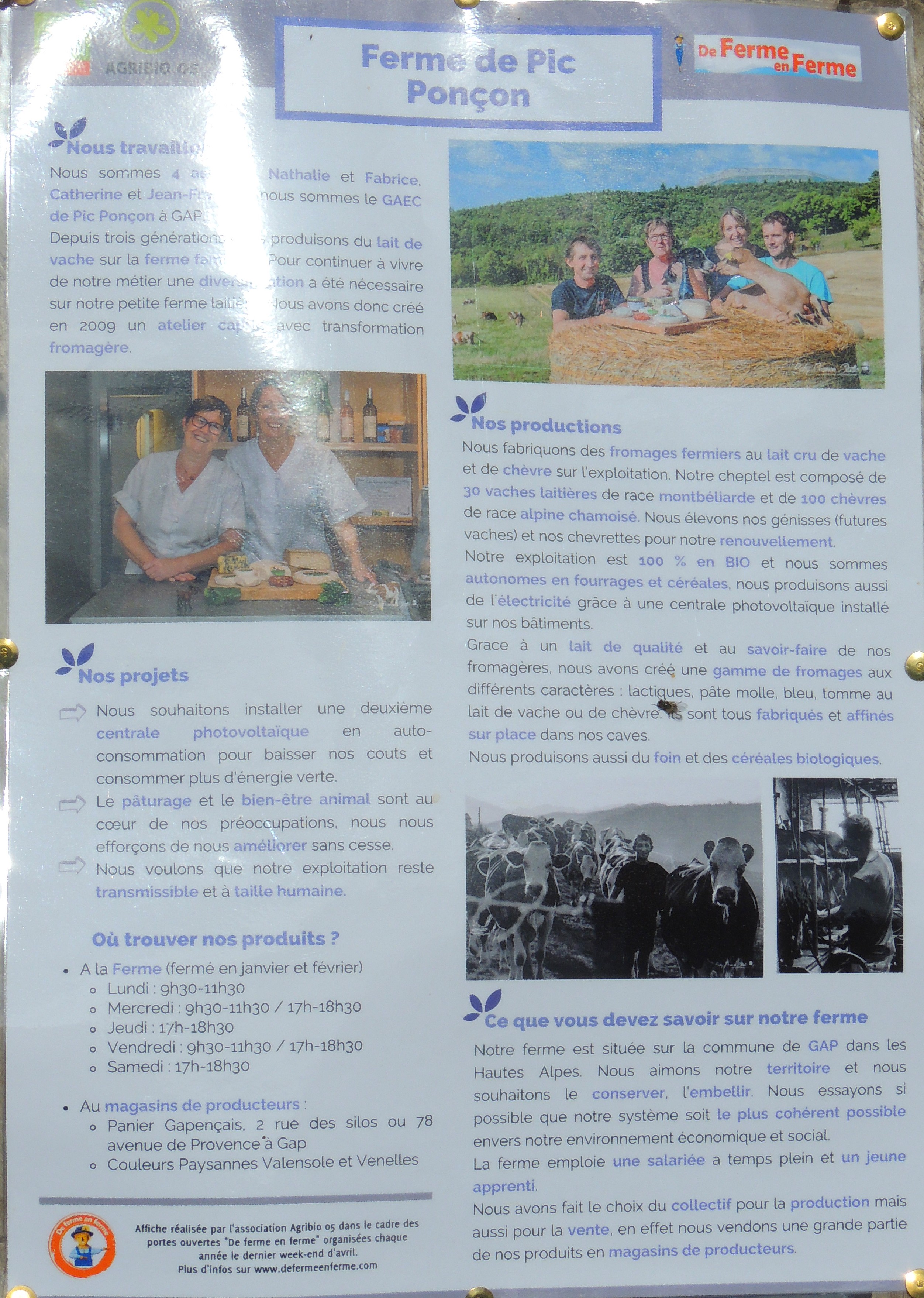 Près de chez moi, se trouve la ferme de PIC PONÇON, fromages fermiers au lait cru de chèvre et de vache où je me sers depuis longtemps.
