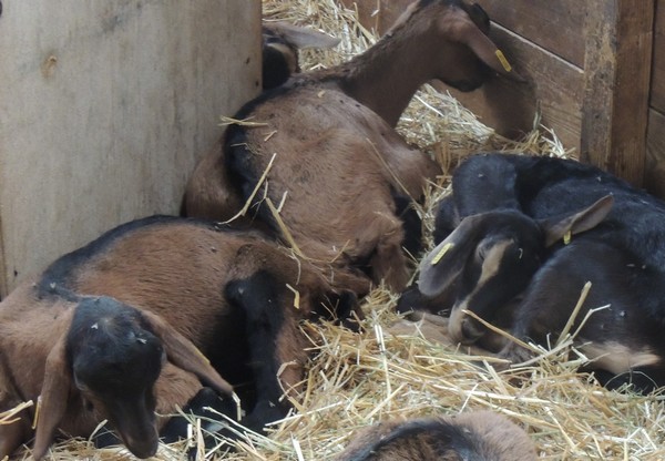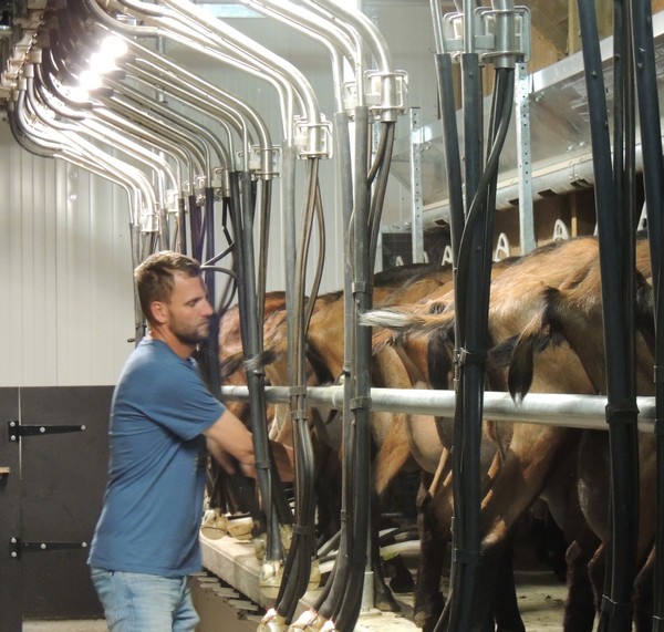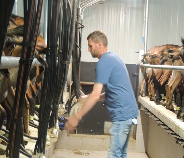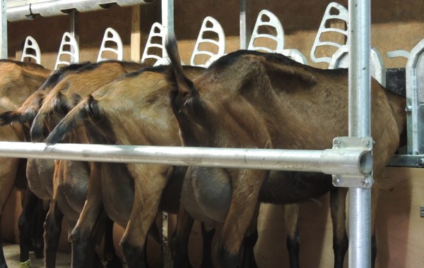 Puis l'heure de la traite ! En position, 18 chèvres de chaque côtés !
