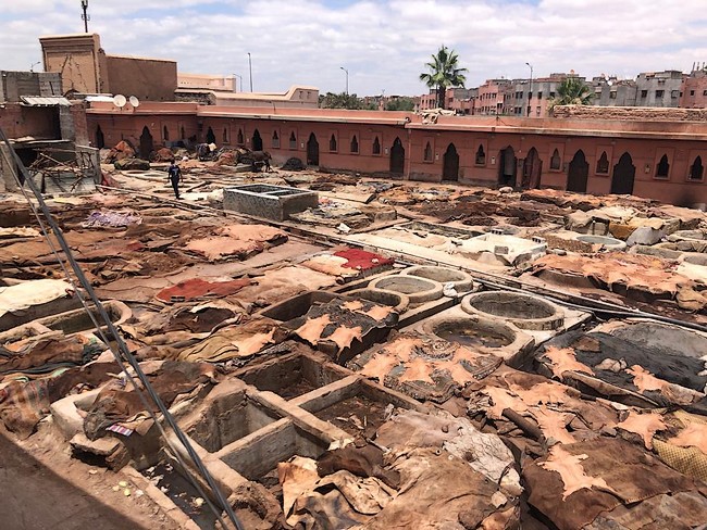 Isolé des souks de la ville, le quartier des tanneurs est endroit pittoresque de Marrakech, où on découvre les secrets de la technique de travail du cuir et il est le principal centre de production de cuir qui alimente les souks de Marrakech. .