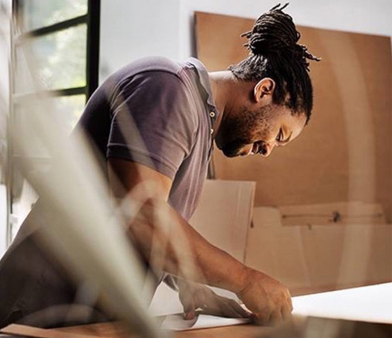 Il crée des œuvres en papier : des lampes, des décors et des créations monumentales.