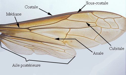 Les principales nervures longitudinales des ailes d'insectes sont, du bord antérieur de l'aile vers l'arrière: