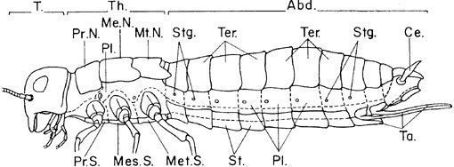 Dessin illustrant la morphologie d'un insecte (d'après Snodgrass).