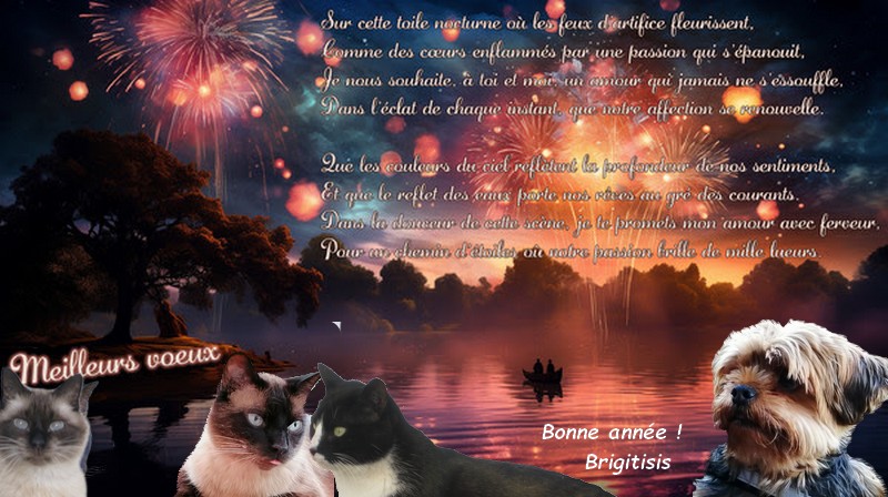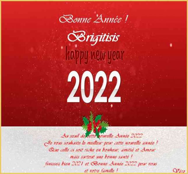 Je te souhaite une bonne année, remplie d'amour, remplie de rêvesEt surtout de la santé, de la tendresse sans trêveJe te souhaite d'être heureux et si tu l'es, de le resterJe te souhaite tout le mieux que ton cœur puisse imaginer Je te souhaite de réussir à réaliser l'impossible