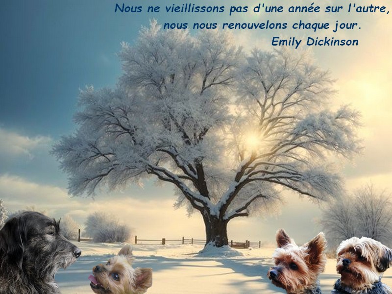 Je te souhaite de l'indulgence pour ceux qui voient à moitié videPour ceux qui n'ont pas cette chance d'avoir l'espoir au creux du bideJe te souhaite un hiver doux, un printemps gonflé de promessesUn été où l'on se fout de tout, un automne teinté d'allégresse Je te souhaite une bonne année, remplie d'amour, remplie de rêves