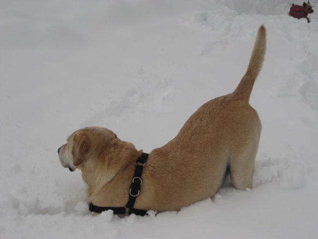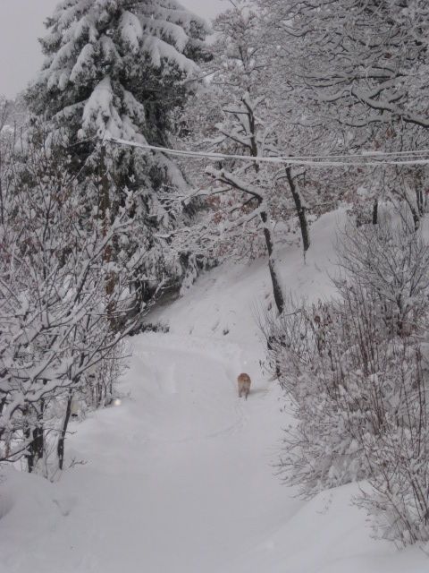 "Dur! dur! ce matin de faire la trace!!! elle est lourde cette neige...belle mais difficile d'avancer...j'ai bien fait de dire aux petiots qu'ils n'arriveraient pas à me suivre! "