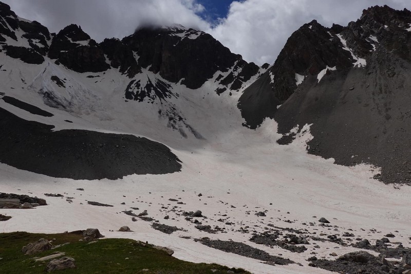 C'est d'ailleurs à 4000 m d'altitude que le Glacier Blanc prend sa source au pied de la majestueuse Barre des Écrins.
