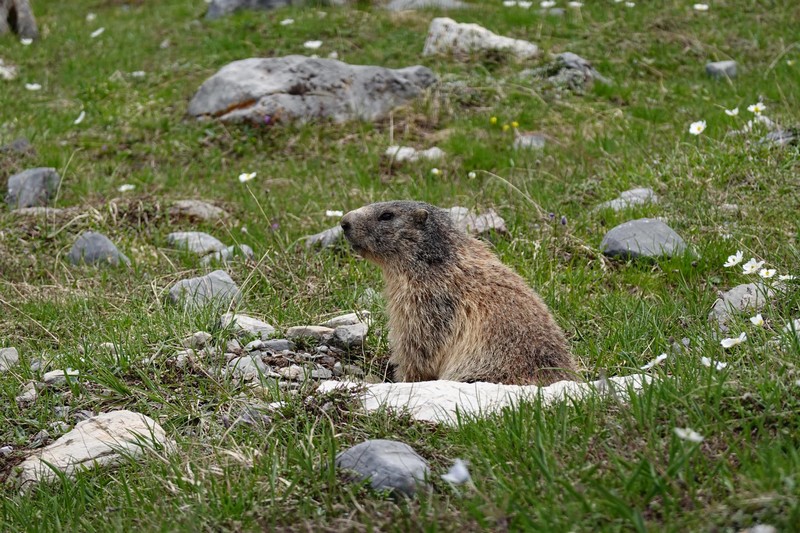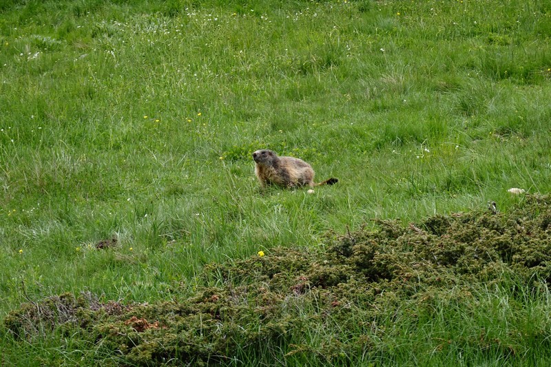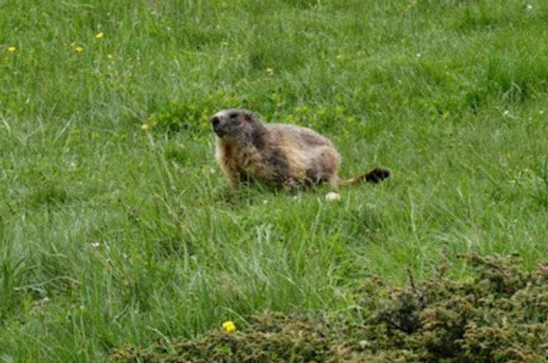 La chance : la copine marmotte qui sort de son trou pendant notre pique nique .